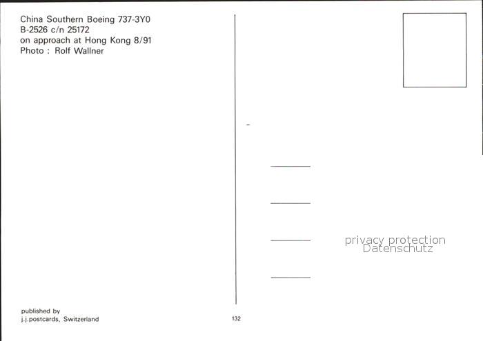 Flugzeuge Zivil China Southern Boeing 737-3Y0 B-2526 c/n 25172 postalisch nicht gelaufen Erhaltung siehe scans