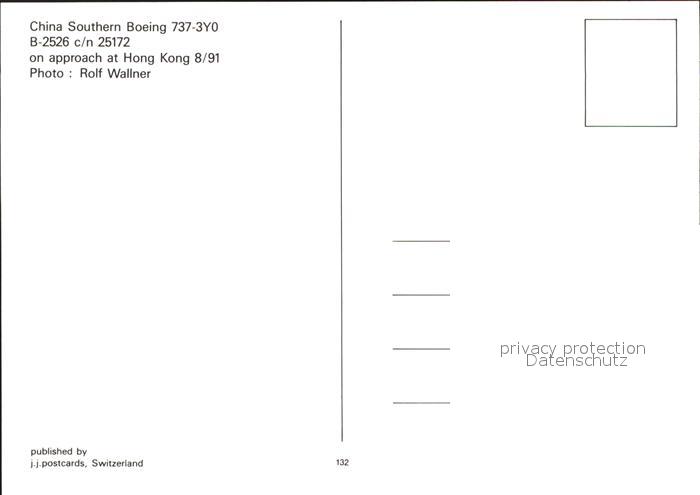 Flugzeuge Zivil China Southern Boeing 737-3Y0 B-2526 c/n 25172 postalisch nicht gelaufen Erhaltung siehe scans