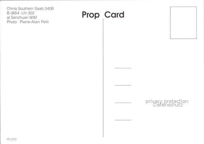 Flugzeuge Zivil China Southern Saab 340B B-3654 c/n 302 postalisch nicht gelaufen Erhaltung siehe scans