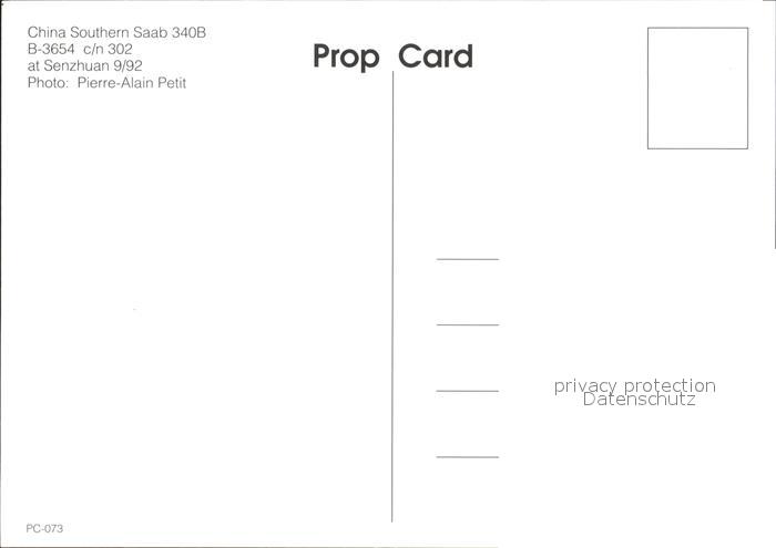 Flugzeuge Zivil China Southern Saab 340B B-3654 c/n 302 postalisch nicht gelaufen Erhaltung siehe scans