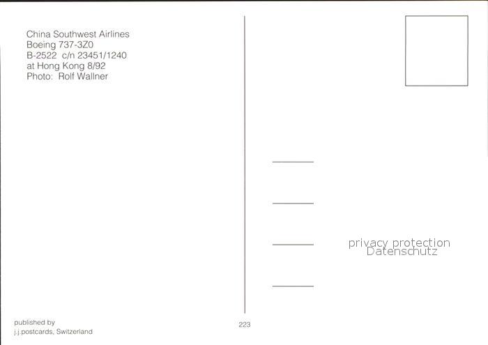 Flugzeuge Zivil China Southwest Airlines Boeing 737-3Z0 B-2522 c/n 23451/1240 postalisch nicht gelaufen Erhaltung siehe scans
