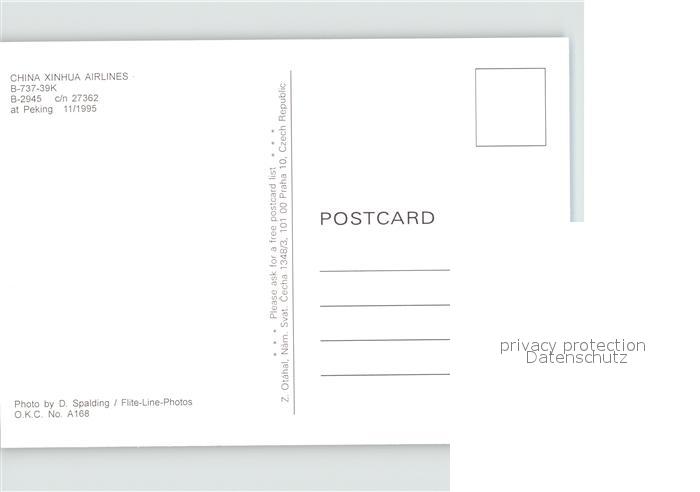Flugzeuge Zivil China Xinhua Airlines B-737-39K B-2945 c/n 27362 postalisch nicht gelaufen Erhaltung siehe scans