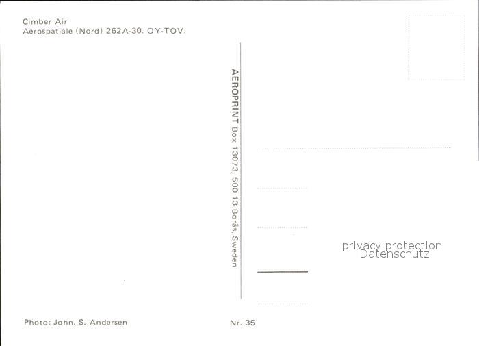Flugzeuge Zivil Cimber Air Aerospatiale Nord 262 A-30 OY-TOV postalisch nicht gelaufen Erhaltung siehe scans
