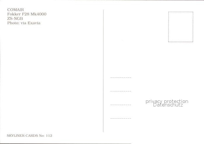 Flugzeuge Zivil Citijet Comari Fokker F28 Mk4000 ZS-NGB postalisch nicht gelaufen Erhaltung siehe scans