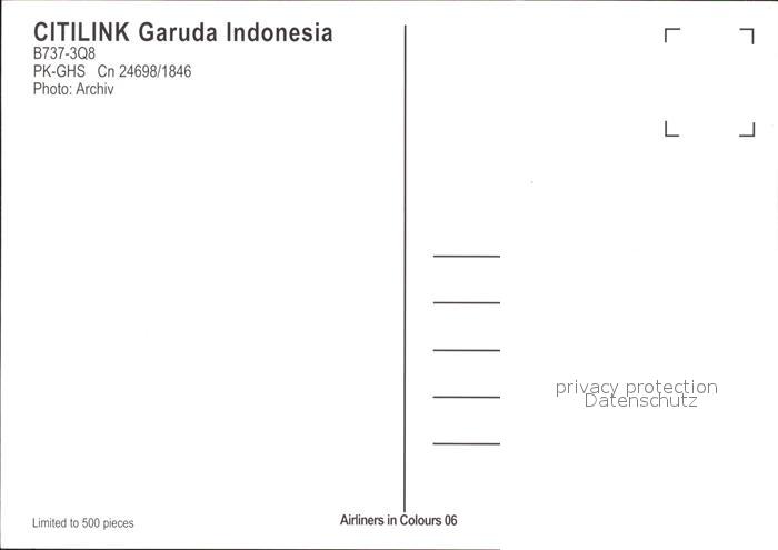 Flugzeuge Zivil Citilink Garuda Indonesia B737-3Q8 PH-GHS Cn24698/1846 postalisch nicht gelaufen Erhaltung siehe scans