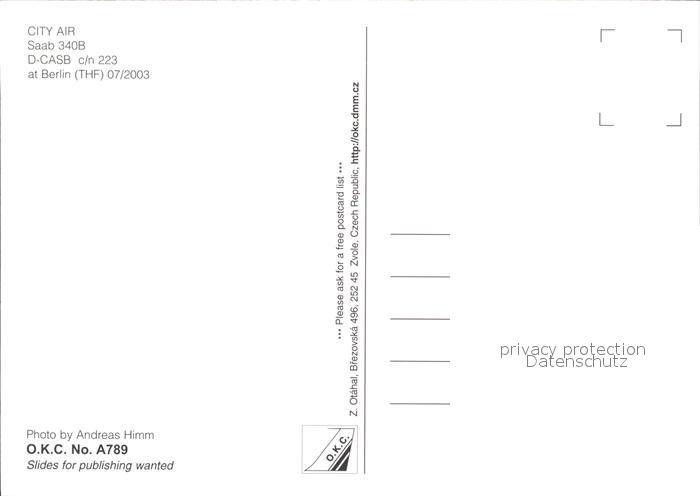 Flugzeuge Zivil City Air Saab 340B D-CASB c/n 223 postalisch nicht gelaufen Erhaltung siehe scans