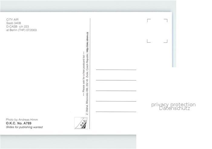 Flugzeuge Zivil City Air Saab 340B D-CASB c/n 223 postalisch nicht gelaufen Erhaltung siehe scans