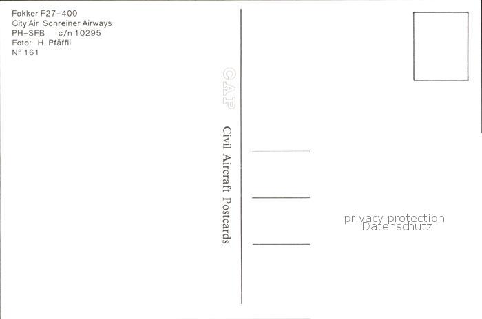 Flugzeuge Zivil City Air Schreiner Airways Fokker F27-400 PH-SFB c/n 10295 postalisch nicht gelaufen Erhaltung siehe scans