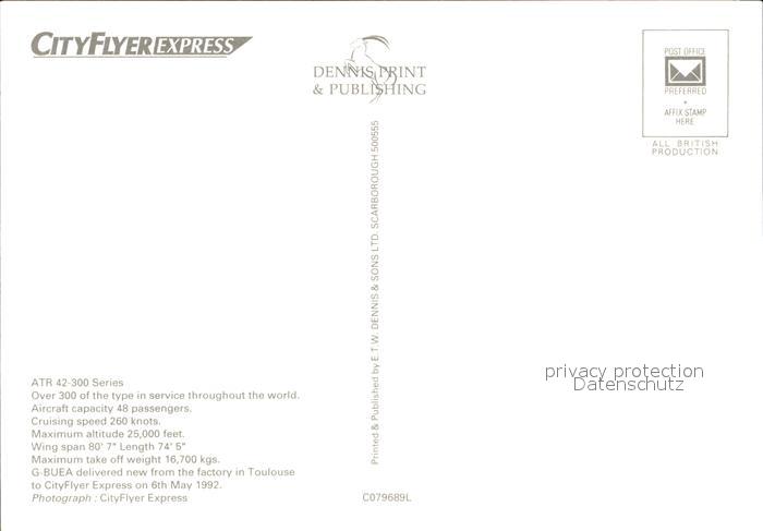 Flugzeuge zivil CityFlyer Express ATR 52 300 Series postalisch nicht gelaufen Erhaltung siehe scans