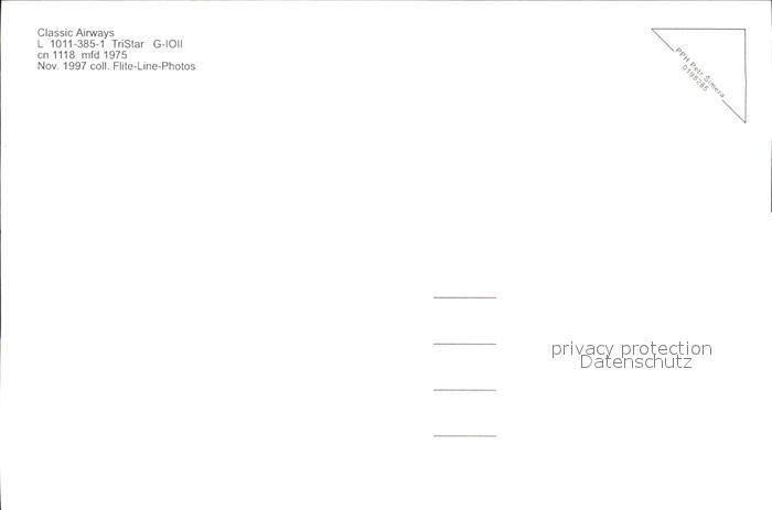 Flugzeuge Zivil Classic Airways L-1011-385-1 TriStar G-IOII cn 118 mfd 1975 postalisch nicht gelaufen Erhaltung siehe scans