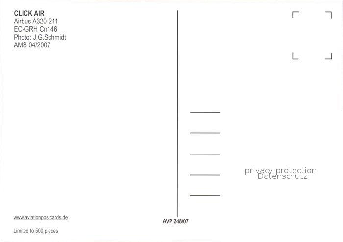 Flugzeuge Zivil Click Air Airbus 320-211 EC-GRH Cn 146 postalisch nicht gelaufen Erhaltung siehe scans