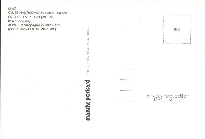 Flugzeuge Zivil Clube Nautico Agua Limpa Brazil DC-3 C-47A PT-KVB 20136 postalisch nicht gelaufen