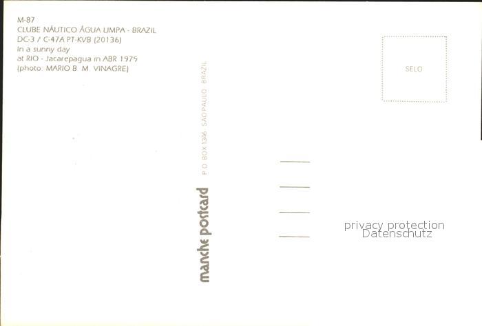 Flugzeuge Zivil Clube Nautico Agua Limpa DC-3 C-47A PT-KVB 20136 postalisch nicht gelaufen Erhaltung siehe scans
