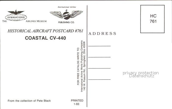 Flugzeuge Zivil Coastal CV-440 postalisch nicht gelaufen Erhaltung siehe scans