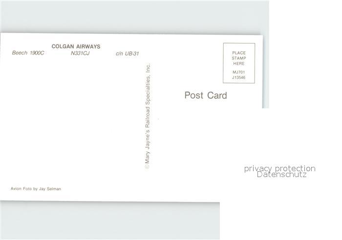 Flugzeuge Zivil Colgan Airways Beech 1900C N331CJ c/n UB-31 postalisch nicht gelaufen Erhaltung siehe scans