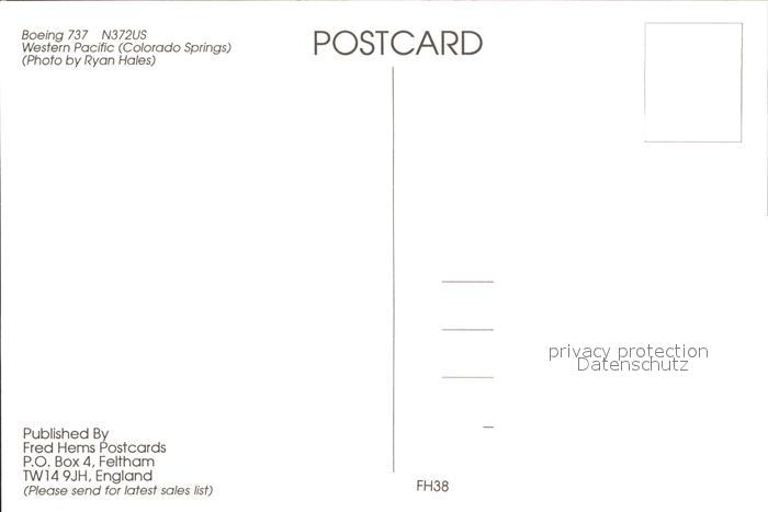 Flugzeuge Zivil Colorado Springs Western Pacific Boeing 737 N372US postalisch nicht gelaufen Erhaltung siehe scans