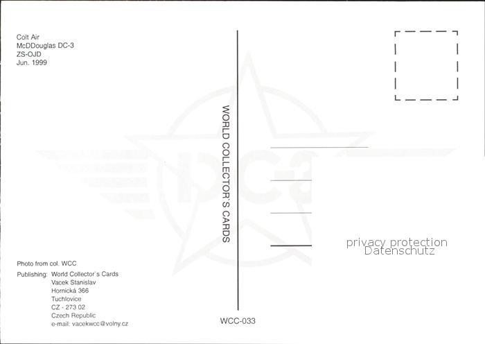 Flugzeuge Zivil Colt Air McDDouglas DC-3 ZS-OJD postalisch nicht gelaufen Erhaltung siehe scans