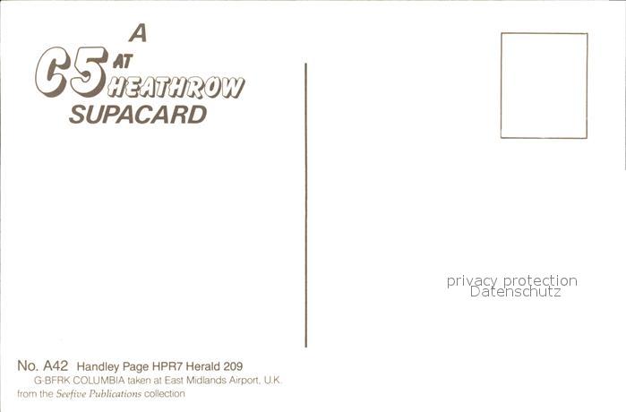 Flugzeuge Zivil Columbia Handley Page HPR7 Herald 209 G-BFRK postalisch nicht gelaufen Erhaltung siehe scans