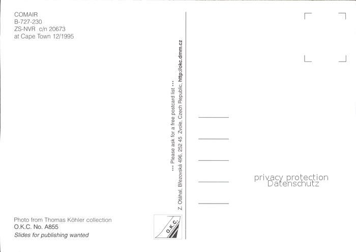Flugzeuge Zivil Comair B-727-230 ZS-NVR c/n 20673 postalisch nicht gelaufen Erhaltung siehe scans