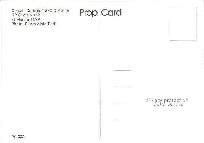 Flugzeuge Zivil Comair Convair T-29C CV-240 RP-C12 c/n 412 postalisch nicht gelaufen Erhaltung siehe scans