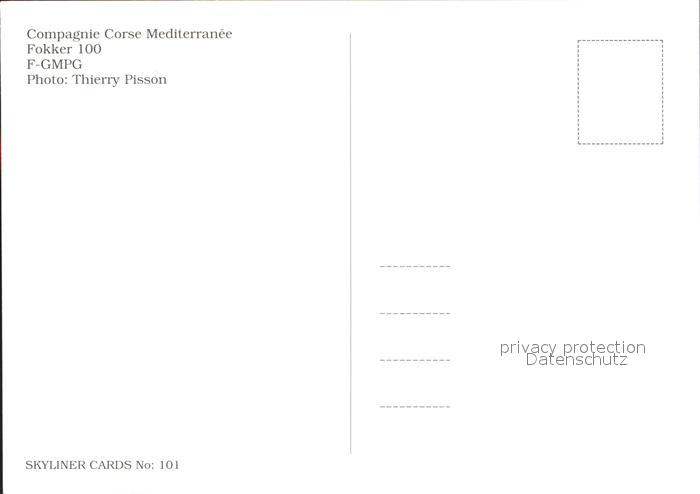 Flugzeuge Zivil Compagnie Corse Mediterranee Fokker 100 F-GMPG postalisch nicht gelaufen Erhaltung siehe scans
