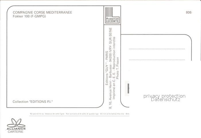 Flugzeuge Zivil Compagnie Corse Mediterranee Fokker 100 F-GMPG postalisch nicht gelaufen Erhaltung siehe scans