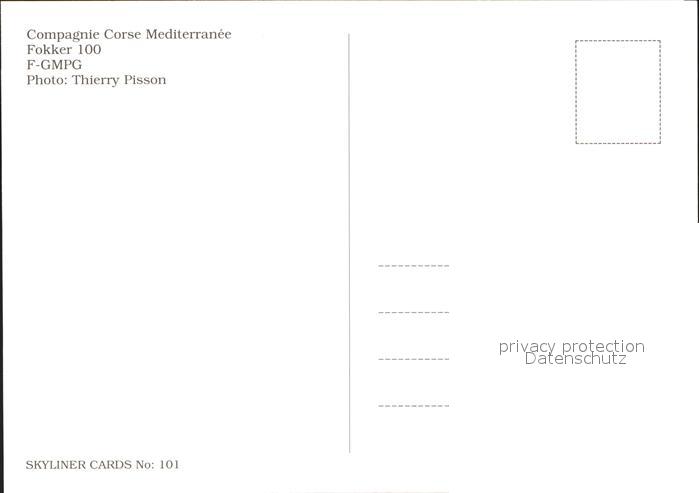 Flugzeuge Zivil Compagnie Corse Mediterranee Fokker 100 F-GMPG postalisch nicht gelaufen Erhaltung siehe scans