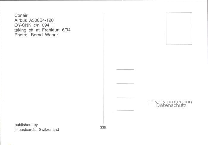 Flugzeuge Zivil Conair Airbus A300B4-120 OY-CNK c/n 094 postalisch nicht gelaufen Erhaltung siehe scans