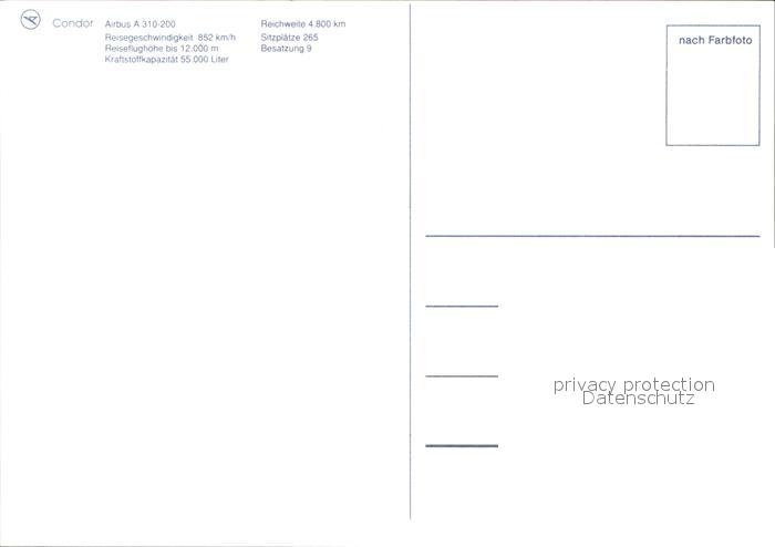 Flugzeuge Zivil Condor A310-200 postalisch nicht gelaufen Erhaltung siehe scans
