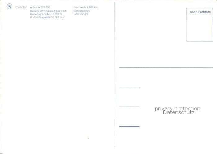 Flugzeuge Zivil Condor Airbus A 310-200 postalisch nicht gelaufen Erhaltung siehe scans