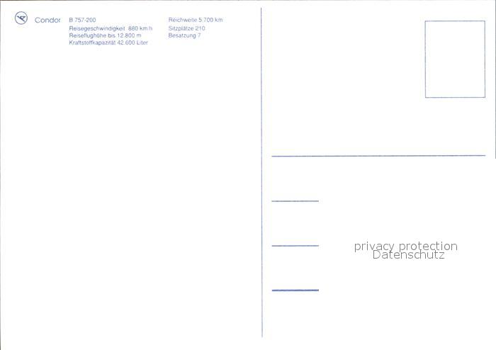 Flugzeuge Zivil Condor B-757-200 postalisch nicht gelaufen Erhaltung siehe scans