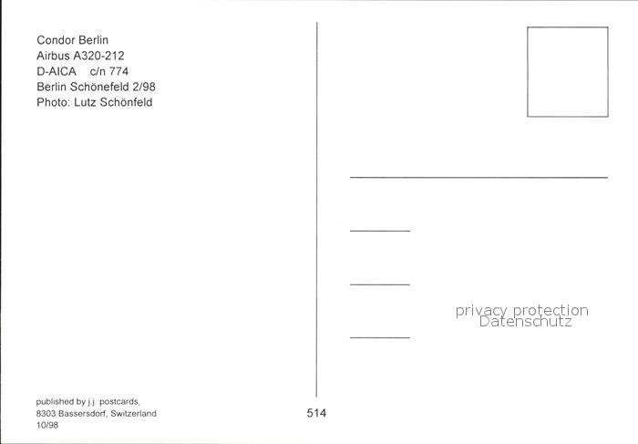 Flugzeuge Zivil Condor Berlin Airbus A320-212 D-AICA c/n 774 postalisch nicht gelaufen Erhaltung siehe scans