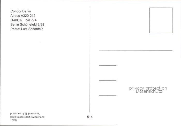 Flugzeuge Zivil Condor Berlin Airbus A320-212 D-AICA c/n 774 postalisch nicht gelaufen Erhaltung siehe scans