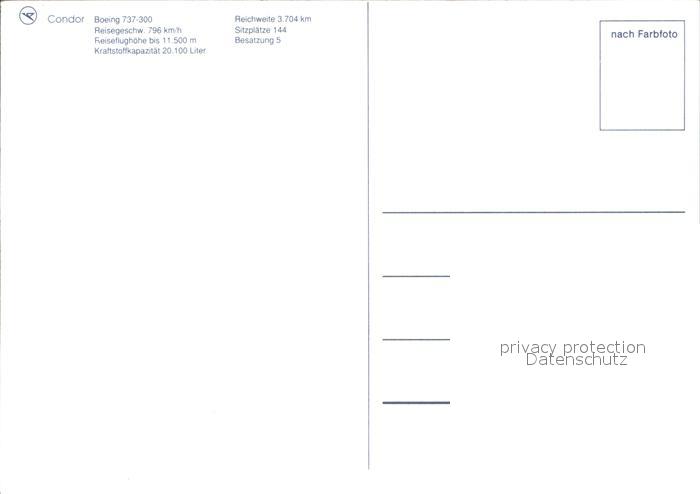Flugzeuge Zivil Condor Boeing 737-300 postalisch nicht gelaufen Erhaltung siehe scans