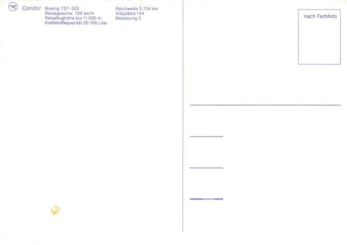 74033928 Flugzeuge Zivil Condor Boeing 737 300 postalisch nicht gelaufen Erhaltung siehe scans [IrynaD87] KatCode: 22120000001300