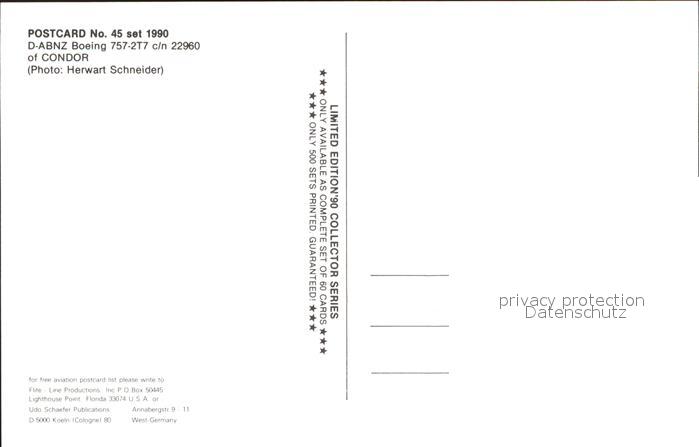 Flugzeuge Zivil Condor Boeing 757-2T7 D-ABNZ c/n 22960 postalisch nicht gelaufen Erhaltung siehe scans