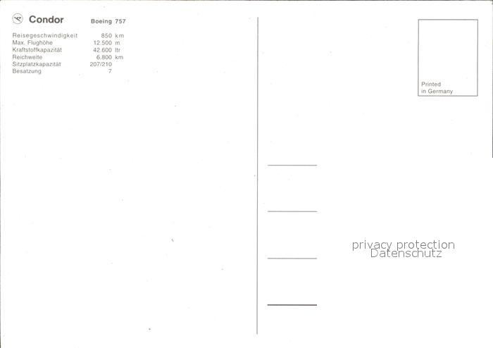 Flugzeuge Zivil Condor Boeing 757 postalisch nicht gelaufen Erhaltung siehe scans
