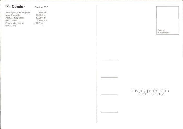 Flugzeuge Zivil Condor Boeing 757 postalisch nicht gelaufen Erhaltung siehe scans