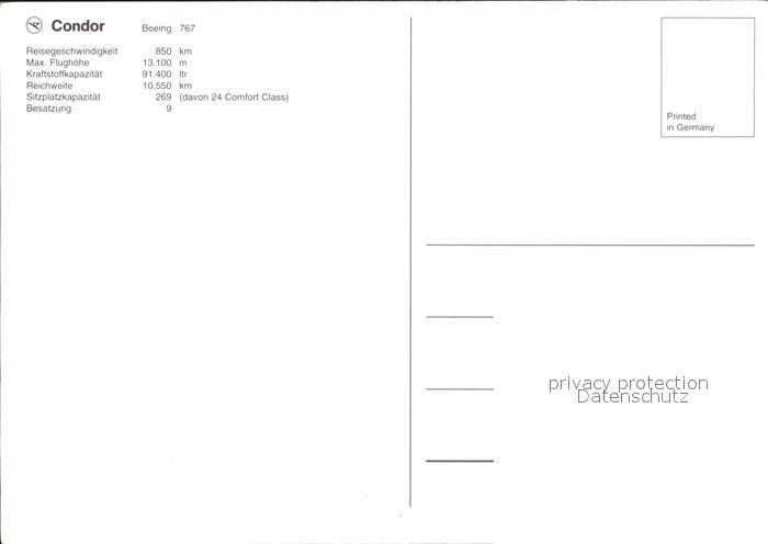 Flugzeuge Zivil Condor Boeing 767 postalisch nicht gelaufen Erhaltung siehe scans