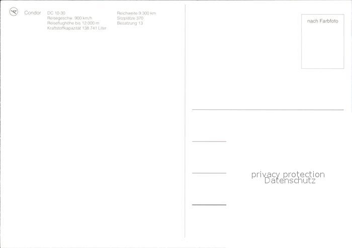 Flugzeuge Zivil Condor DC 10-30 postalisch nicht gelaufen Erhaltung siehe scans