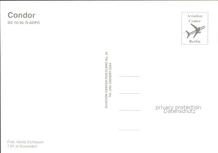 Flugzeuge Zivil Condor DC-10-30 D-ADPO postalisch nicht gelaufen Erhaltung siehe scans