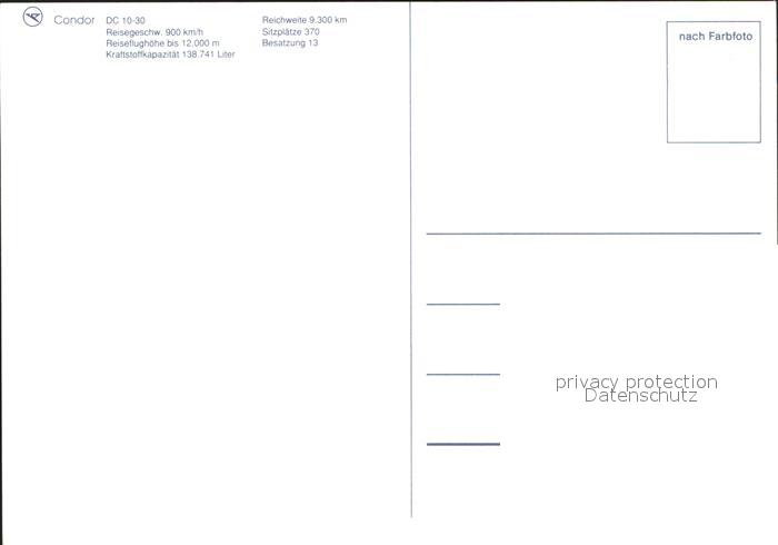 Flugzeuge Zivil Condor DC10-30 postalisch nicht gelaufen Erhaltung siehe scans