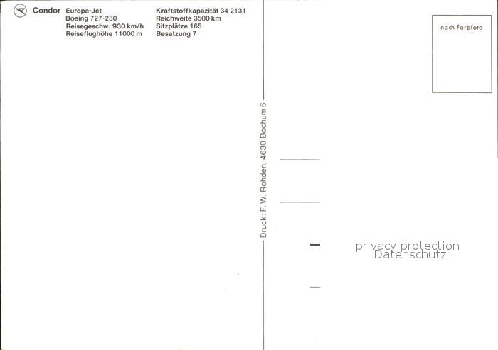 Flugzeuge Zivil Condor Europa-Jet Boeing 727-20 postalisch nicht gelaufen Erhaltung siehe scans