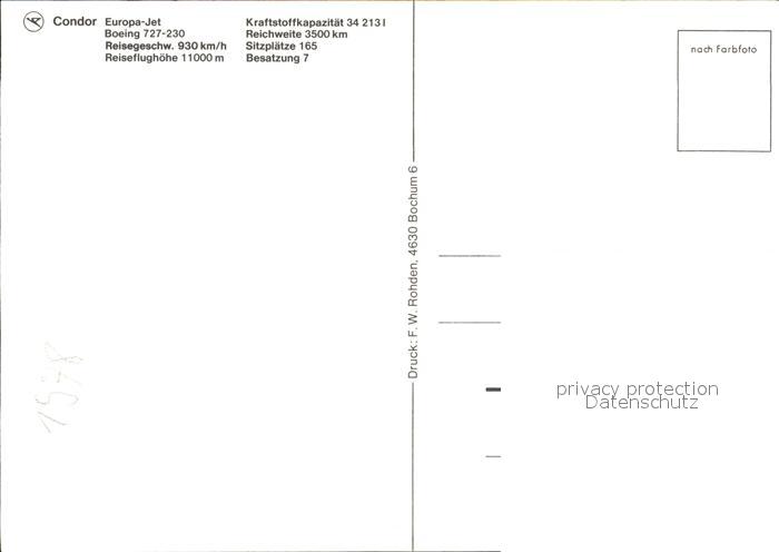 72609276 Flugzeuge Zivil Condor Europa-Jet Boeing 727-230 KatCode 22120000001300