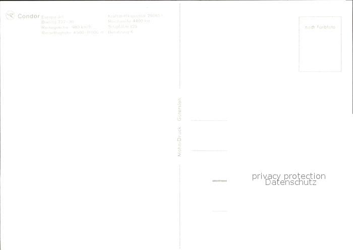 Flugzeuge Zivil Condor Europa-Jet Boeing 727-30 postalisch nicht gelaufen Erhaltung siehe scans