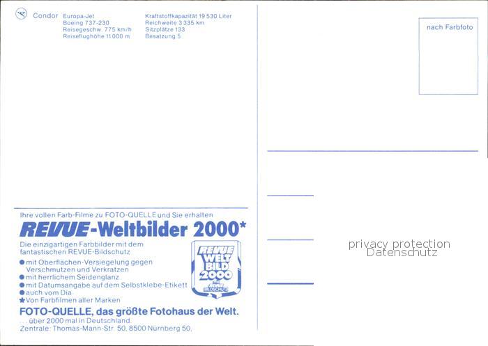 Flugzeuge Zivil Condor Europa-Jet Boeing 737-230 postalisch nicht gelaufen Erhaltung siehe scans