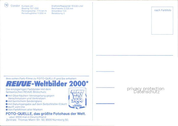 Flugzeuge Zivil Condor Europa-Jet Boeing 737-230 postalisch nicht gelaufen Erhaltung siehe scans