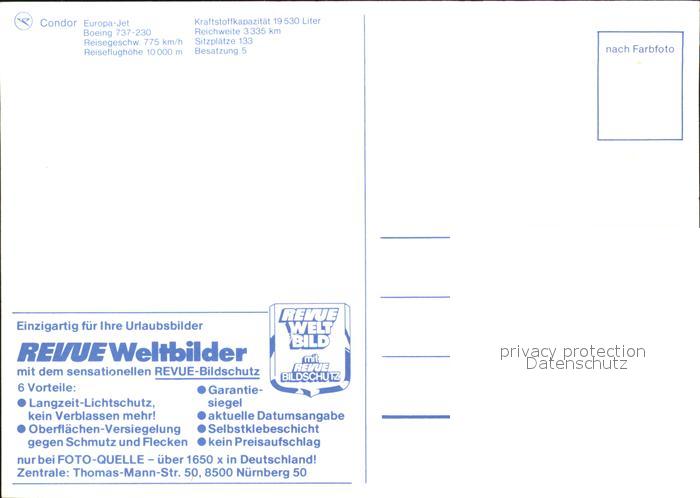 Flugzeuge Zivil Condor Europa-Jet Boeing 737-230 postalisch nicht gelaufen