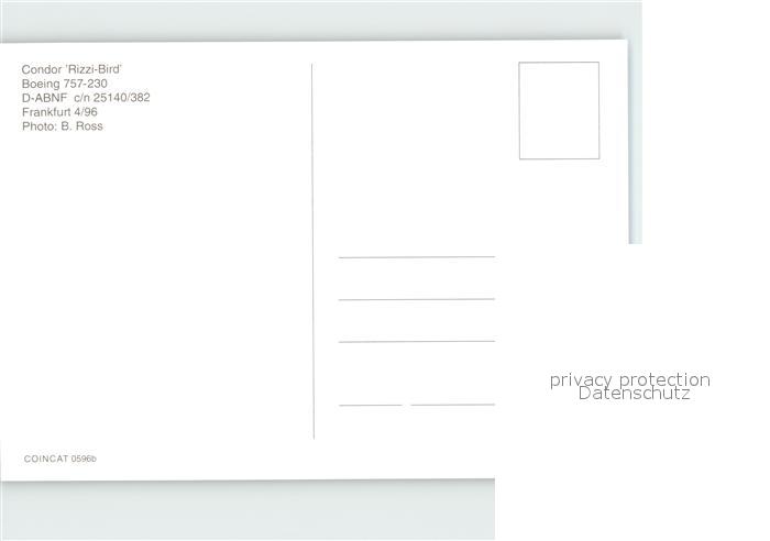 Flugzeuge Zivil Condor Rizzi-Bird Boeing 757-230 D-ABNF c/n 25140/382 postalisch nicht gelaufen Erhaltung siehe scans
