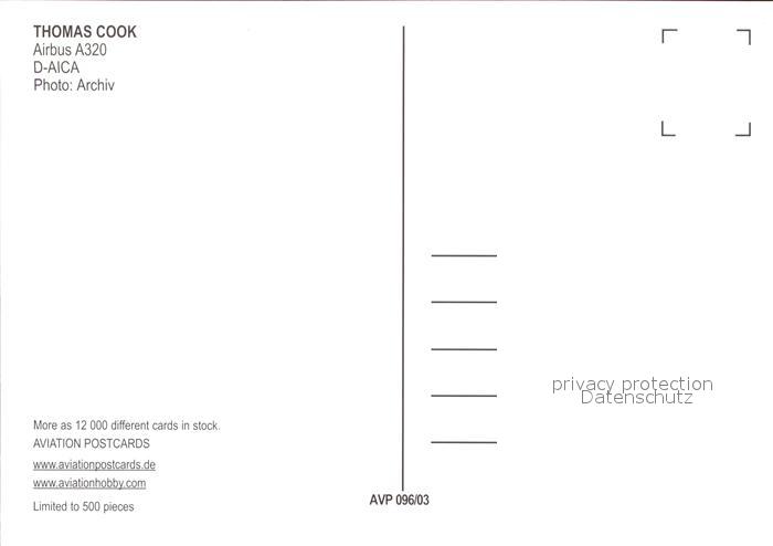 Flugzeuge Zivil Condor Thomas Cook A320 D-AICA postalisch nicht gelaufen Erhaltung siehe scans